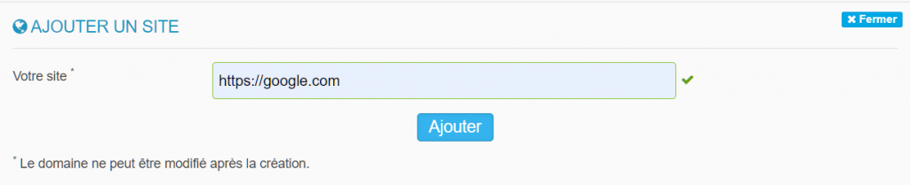 Cliquez sur « + Ajouter un site » pour ajouter votre site internet !