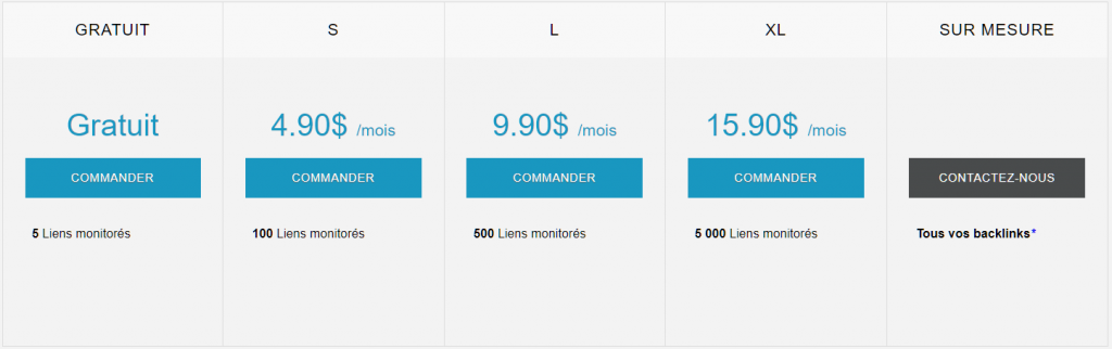 - Extra Large (15.90$/mois pour 5 000 liens)